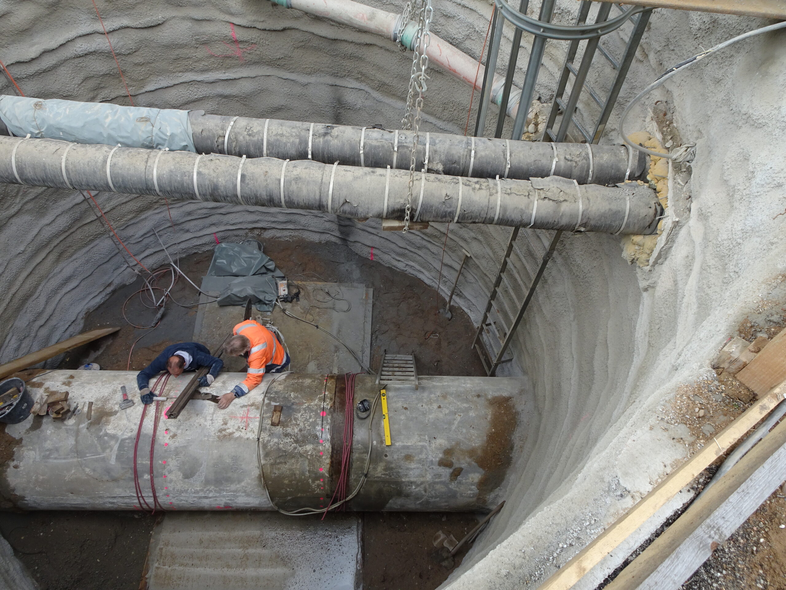 Neben dem Ausbau einer neuen Regenwasserhaltung (DN/OD 315 in H-PP) ist ein aufwendiger Anschlussschacht auszubauen. Zur Herstellung des Schachtes sind Mauerwerksarbeiten in einer Tiefen von rd. 5,80m und auf einer Fläche von ca. 2,20 auf 3,70 m erforderlich. Durch den neuen Schacht können zwei zusätzliche Leitungen über einen innenliegenden Absturz an die bestehende Hauptleitung (DN 1200 in Stahlbeton) angebunden werden.